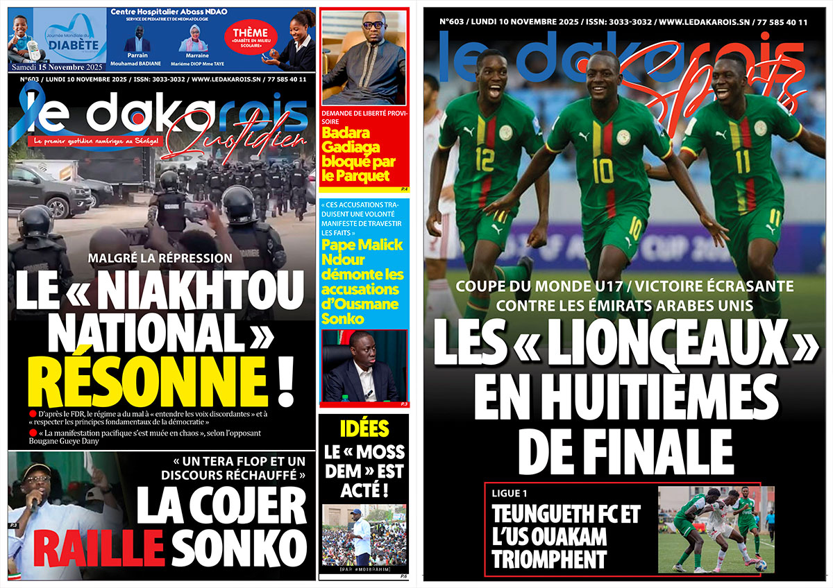 Le Dakarois Quotidien & Le Dakarois Sports N°603 – 10/11/2025