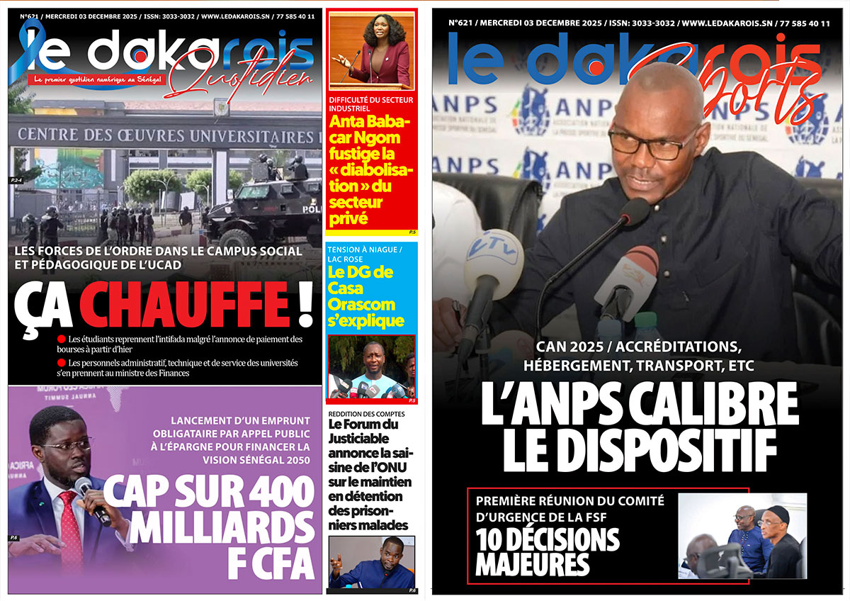 Le Dakarois Quotidien & Le Dakarois Sports N°621 – 03/12/2025