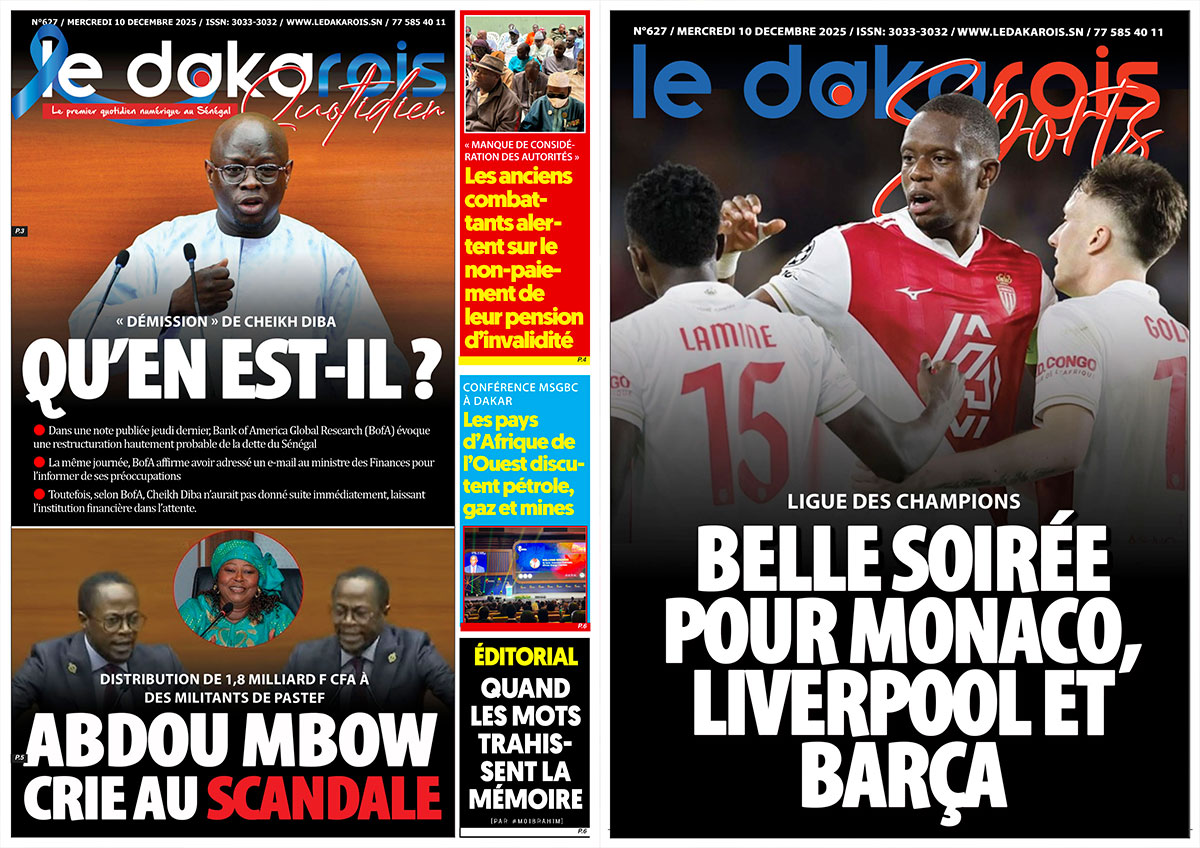 Le Dakarois Quotidien & Le Dakarois Sports N°627 – 10/12/2025