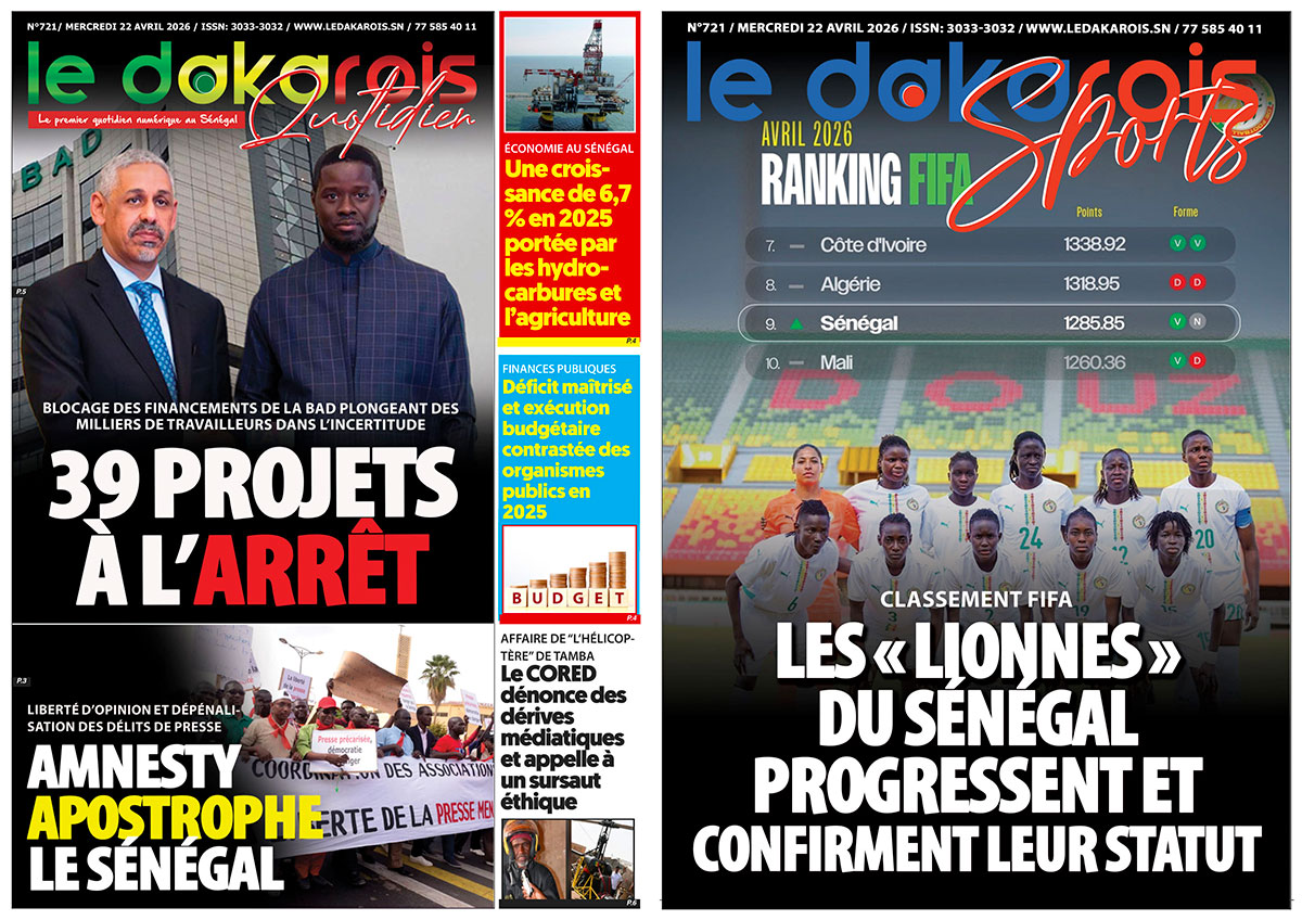 Le Dakarois Quotidien & Le Dakarois Sports N°721 – 22/04/2026