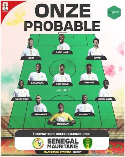 Le second ajustement intervient au milieu de terrain, où Pape Gueye effectue son grand retour après avoir purgé sa suspension. Le joueur de Villarreal retrouve ainsi une place de titulaire aux côtés d’Idrissa Gana Gueye. Ensemble, les deux milieux devraient former une paire complémentaire, capable de récupérer les ballons tout en assurant la relance vers l’avant. Leur expérience et leur volume de jeu seront essentiels pour contenir l’entrejeu mauritanien et permettre à la ligne offensive de s’exprimer pleinement.